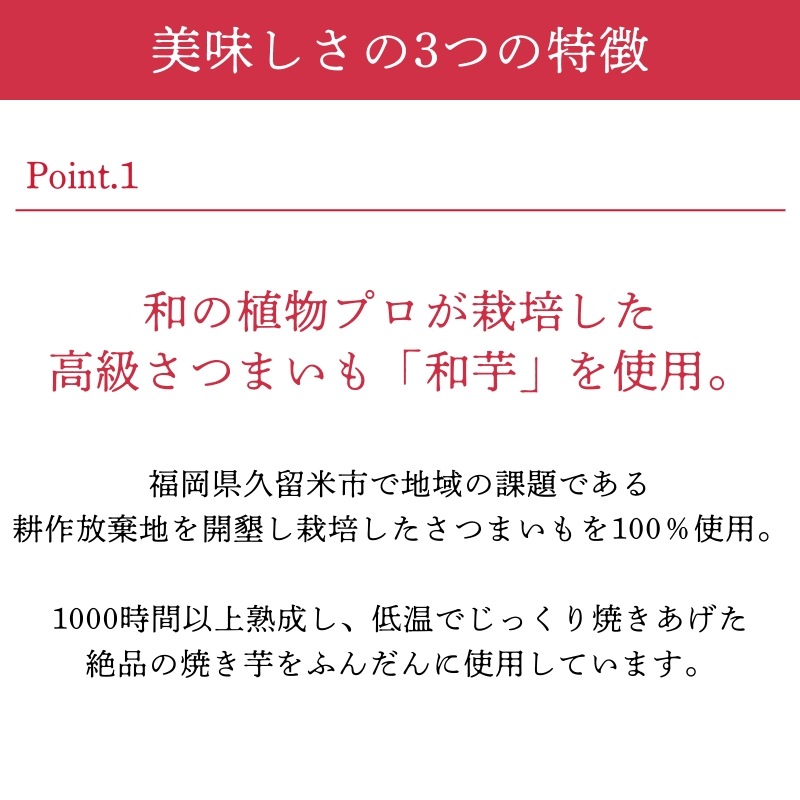 | 原材料 | さつまいも(九州産),牛乳,生乳(国産),乳等を主要原料とする食品,グラニュー糖,寒天加工品(粉あめ、寒天),洋酒/トレハロース |