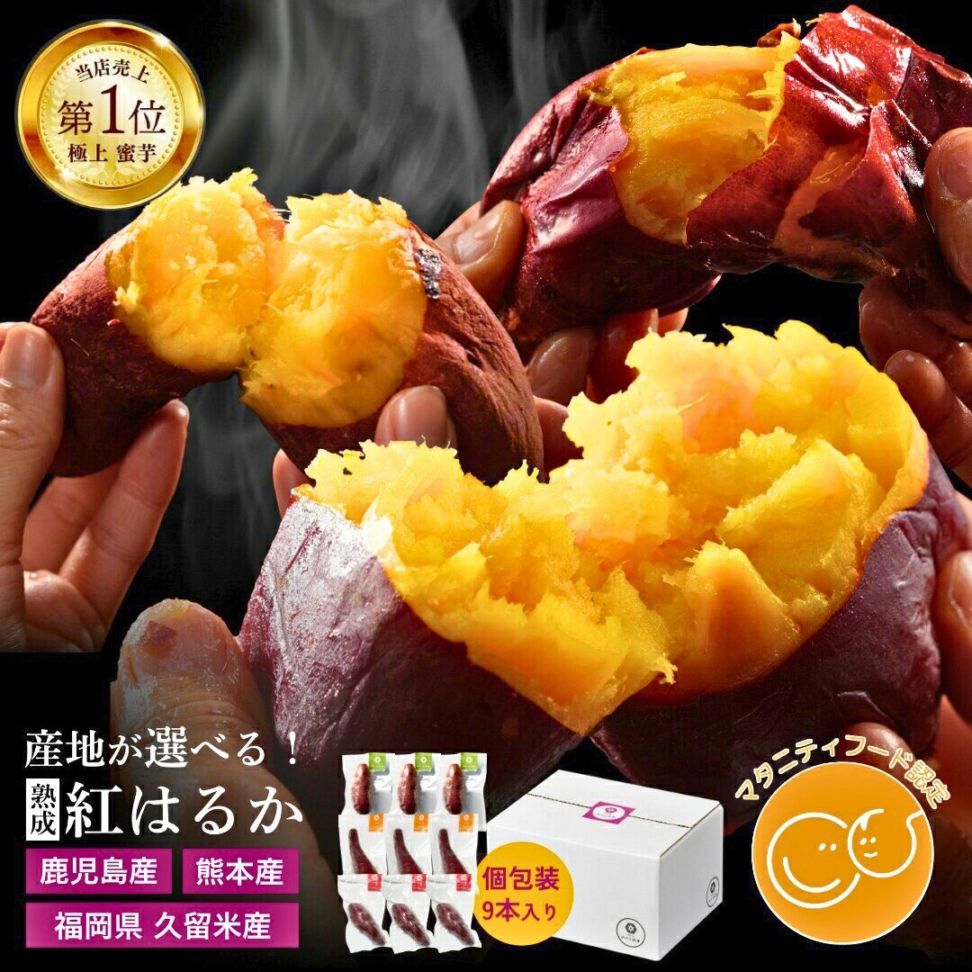 【個包装】九州産紅はるか焼き芋冷凍サイズが選べる便利な食べ比べセット合計1.6kg以上(鹿児島産、熊本産)