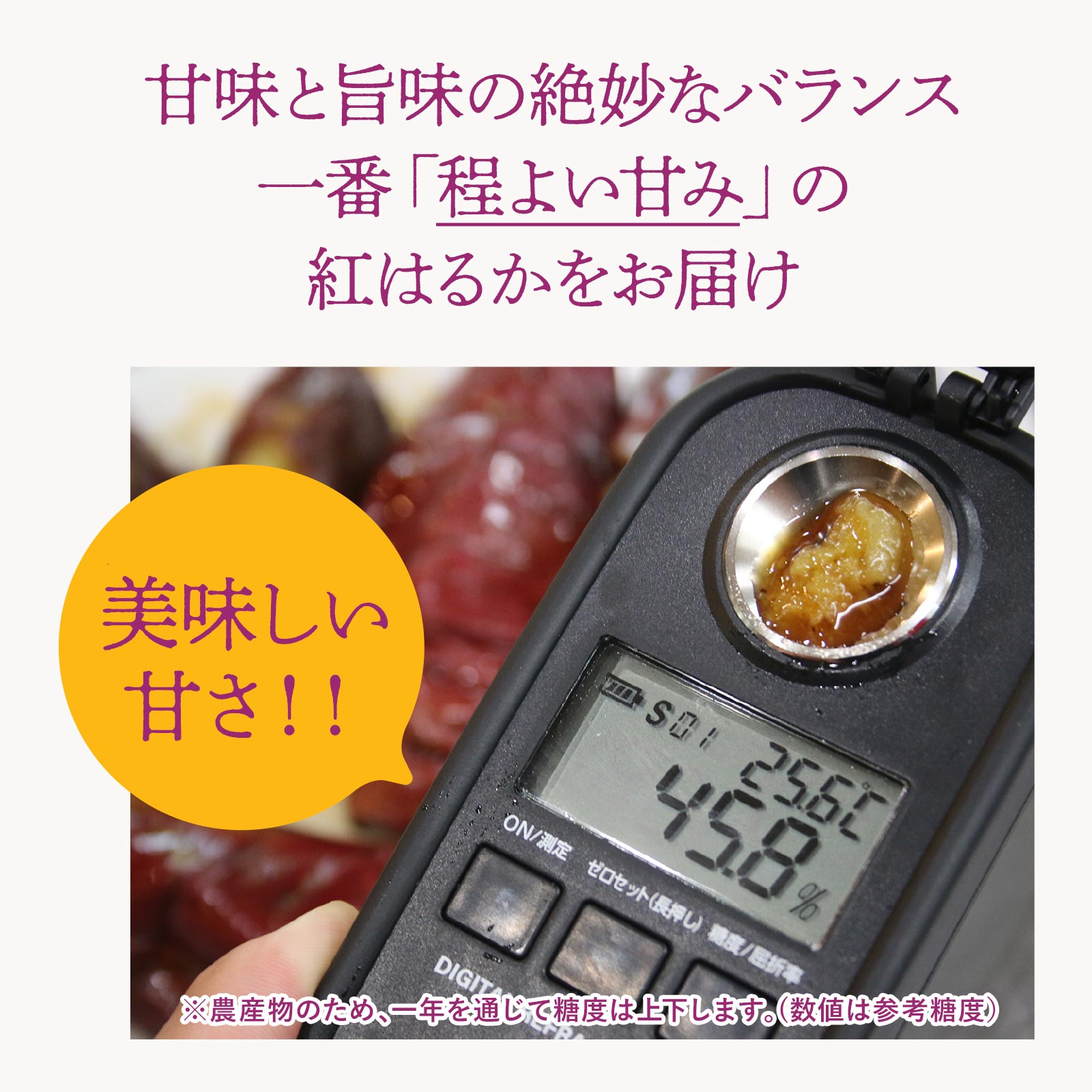 ✅ 最低1,000時間以上の低温熟成で、甘みとコクが最大化 収穫後すぐの紅はるかではなく、じっくり時間をかけて熟成。でんぷんが糖に変化し、上品で濃厚な蜜のような甘みが生まれます。